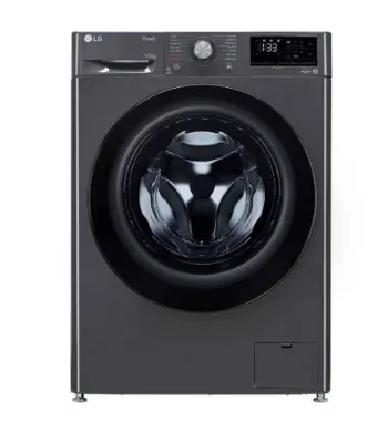 This LG front load washing machine offers a huge 10.0 kg capacity, perfect for large families. Its silver design, smart inverter motor, and multiple wash programs provide powerful cleaning with energy efficiency.